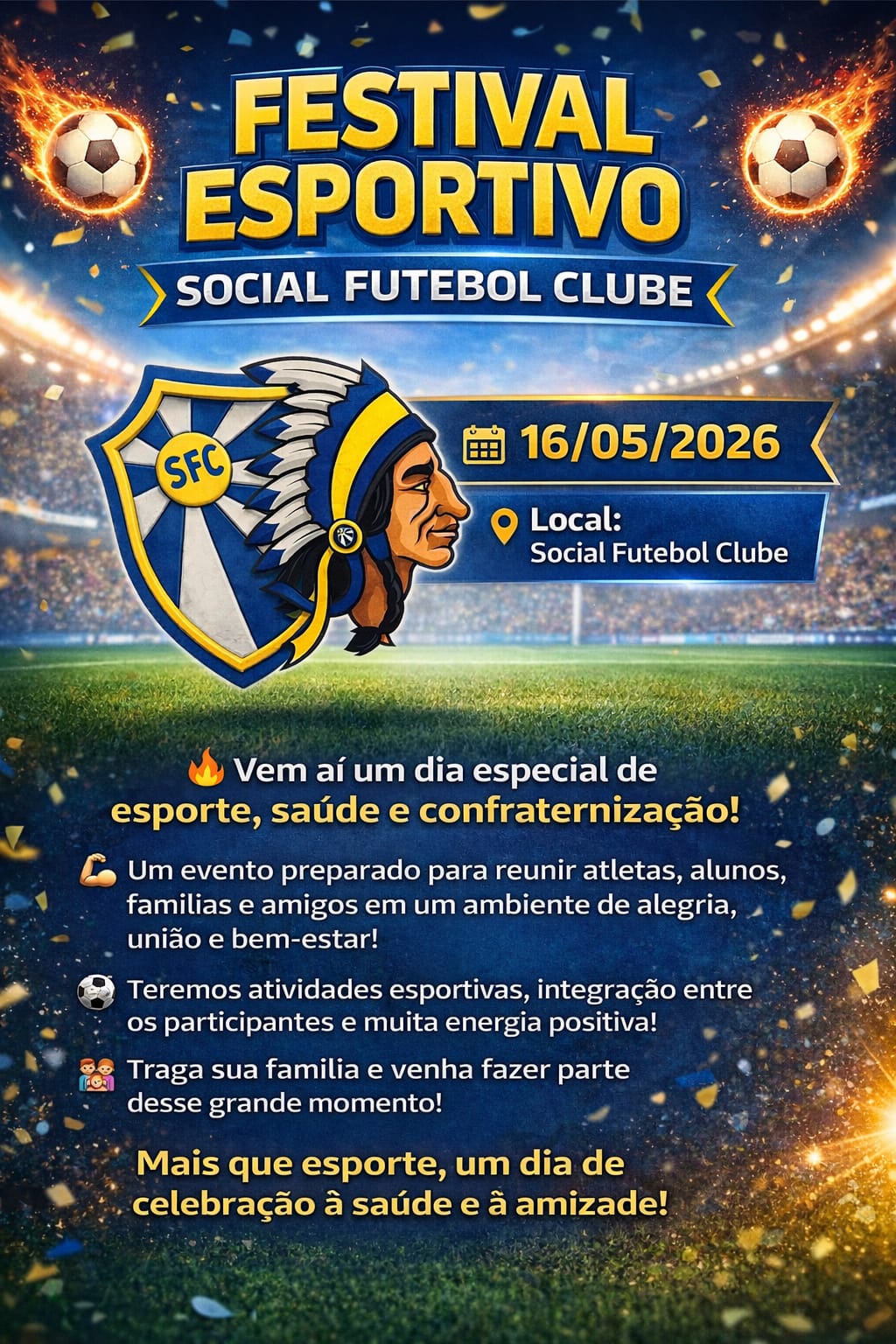 *PERCURSO CORRIDA FESTIVAL ESPORTIVO SOCIAL* 5km LARGADA( R. JOÃO DE DEUS ASSUNÇÃO, SOCIAL FUTEBOLCLUBE) SAI RETO DO PORTÃO VIRA A DIREITA ( R. JOSÉ FALCONIERI DOS SANTOS) SEGUE ATE RE TINTAS VIRA A DIREITA NA (AV. JOSÉ LUIZ ALVES) SEGUE ELA TODA VIRA A ESQUERDA ( R. ROSINA SILVA TERRA, PONTE DOS CACHORROS) APOS A PONTE VIRA A DIREITA (R.JOSE NARCISO SILVA) NA PROXIMA ESQUINA VIRA A ESQUERDA NA ( R. MIGUEL FERNANDES MORAIS) SEGUE ATE O FINAL VIRA A DIREITA NA (AVENIDA LEITE DE CASTRO MGC-383) SEGUE ATE O FINAL VIRA A DIREITA NA PONTE DO BEZERRÃO) SEGUE SENTIDO POSTO CANADA E APOS VIRA A DIREITA (AV. DOMINGOS PINTO CAMARANO) SEGUE ELA ATE O FINAL E CONTINUA NA MESMA VIA SÓ QUE COM O NOME DE (RUA ANTÔNIO AUGUSTO DA SILVA) A MESMA CONTINUA COM NOME DE (RUA TOMÉ PORTES dEL REI) SEGUE ELA ATE A LINHA FERREA VIRA A DIREITA APOS LINHA FERREA ( R. ANTÔNIO FIRMINO DE PAULA) SEGUE ELA ATE O FINAL VIRA A ESQUERDA NA (R. GUIA LOPES)SEGUE ELA ATE O FINAL VIRA A DIREITA NA ( AV. SETE DE SETEMBRO) SEGUE ATE A LINHA FERREA VIRA A DIREITA APOS LINHA FERREA NA (R. JOAQUIM ZITO DE SOUZA) SEGUE NELA VIRA A ESQUERDA NA ( R. JOÃO DE DEUS ASSUNÇÃO) DAI SEGUE ATE A LINHA DE CHEGADA NO CAMPO DO SOCIAL. (Organização do evento)