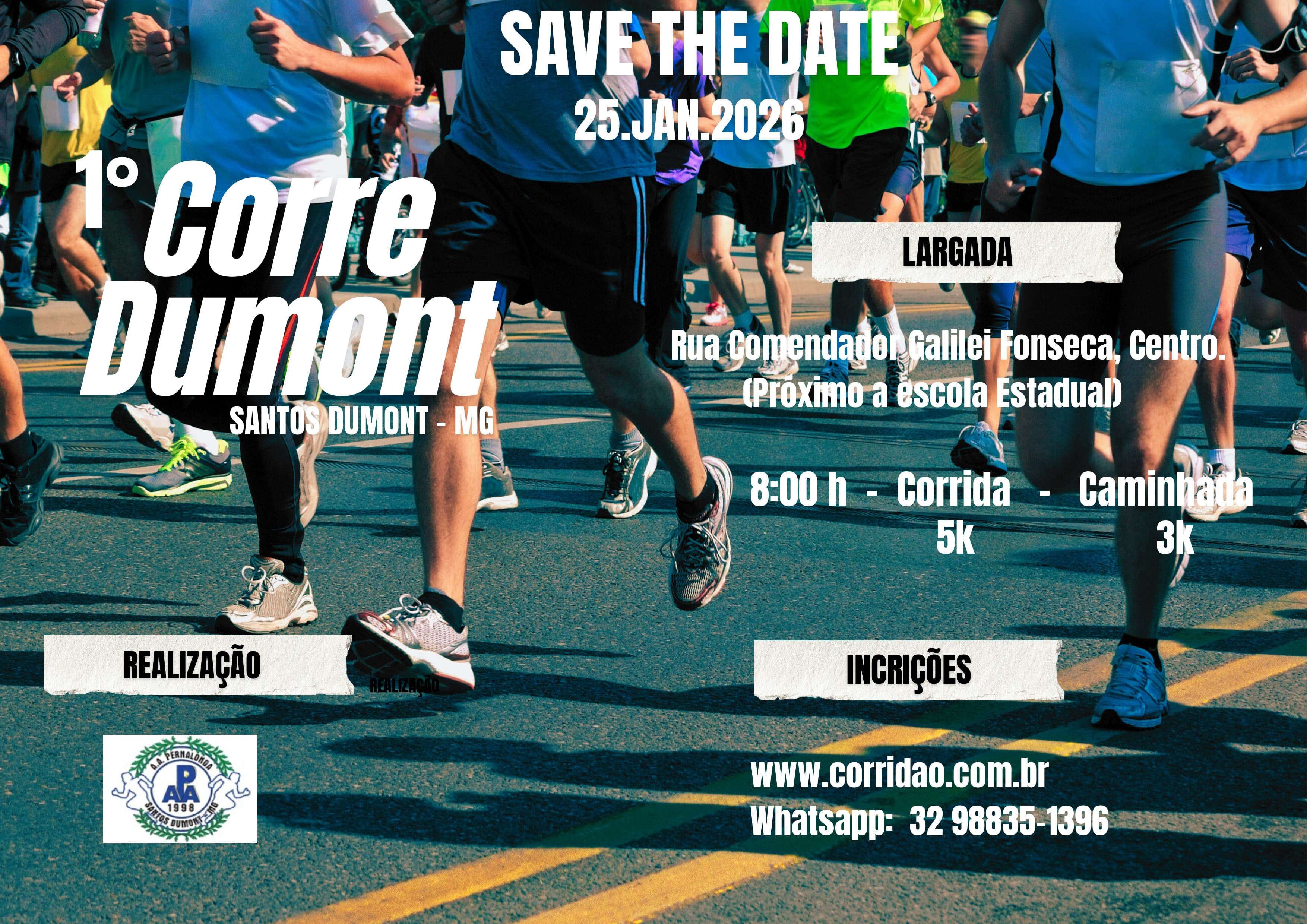 Largada 8:00 h - Corrida 5K e Caminhada 3K