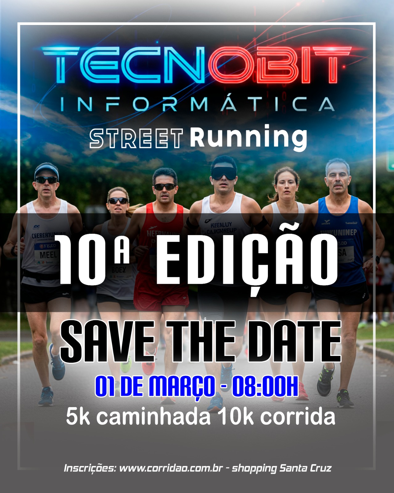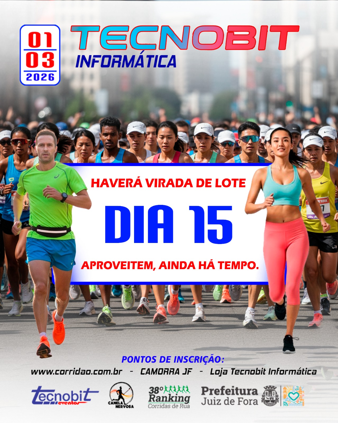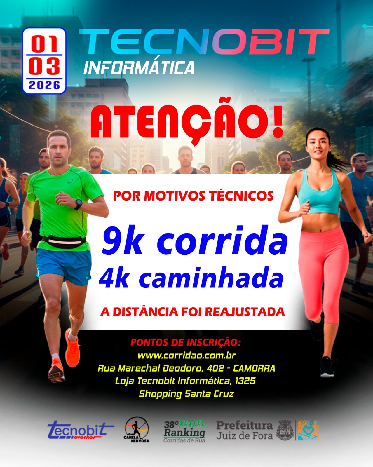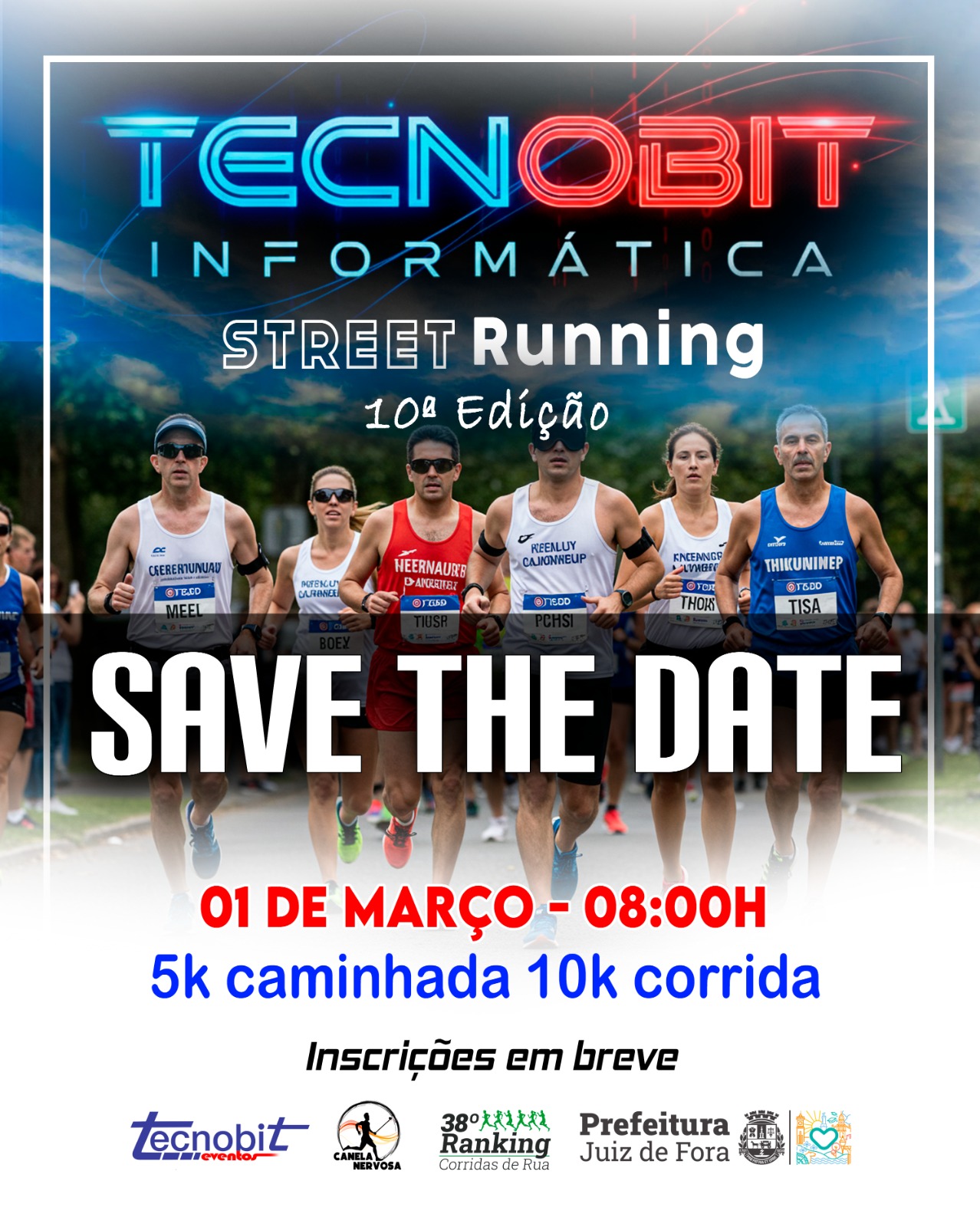 A 10° Corrida Tecnobit Informática integra o 38° Ranking de Corridas de Rua de Juiz de Fora 2026. Esperamos vcs atletas para um evento seguro, animado, com muito amor e carinho.