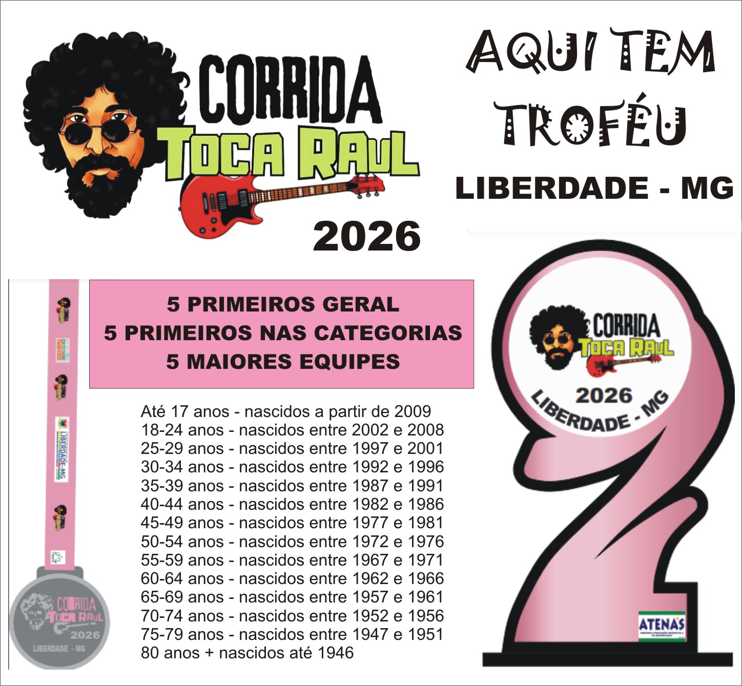 A premiação dos 7 KM TOCA RAUL LIBERDADE será assim distribuída:
