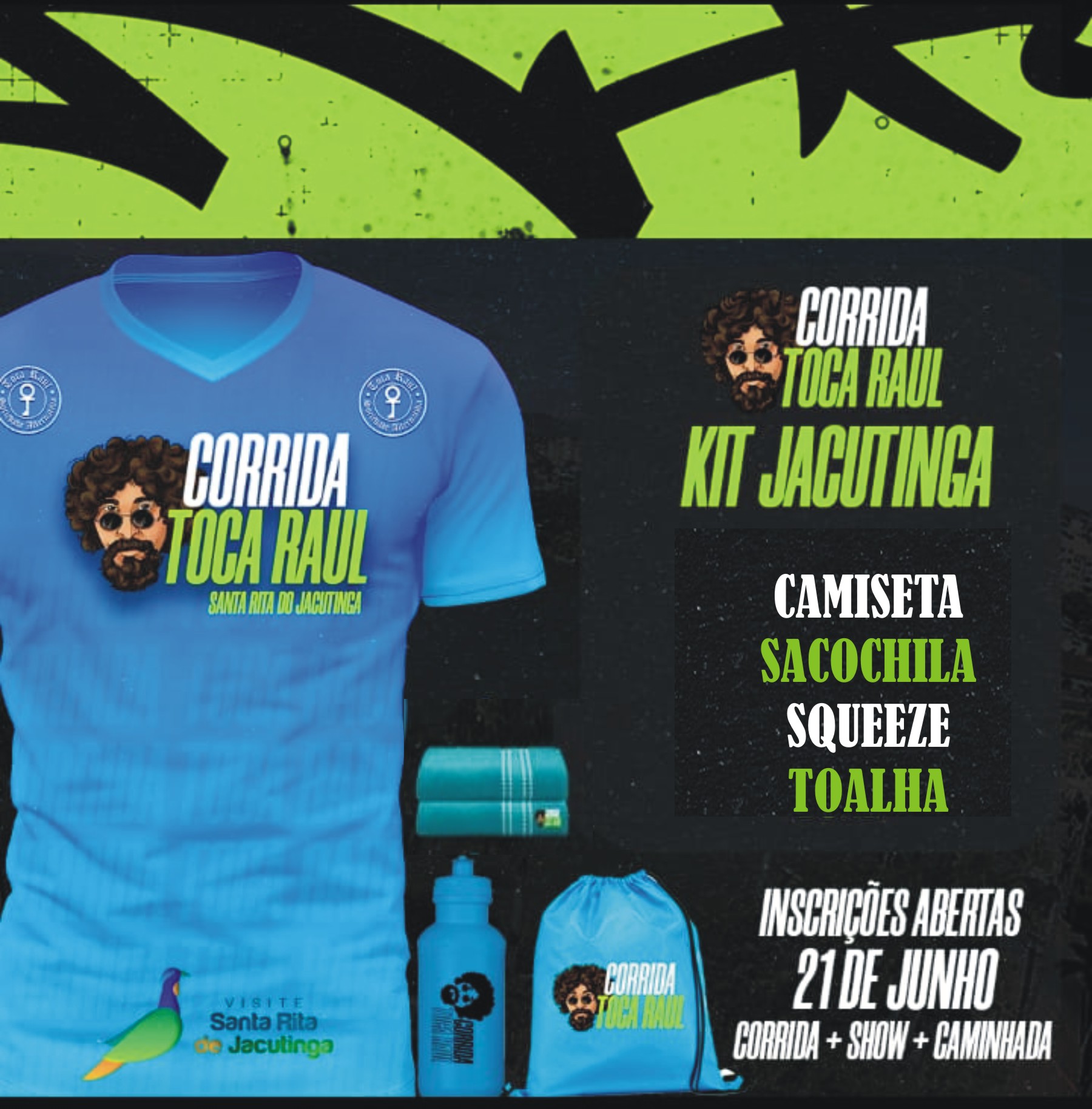 Camiseta, sacochila, squeeze, toalha, medalha e número de peito: